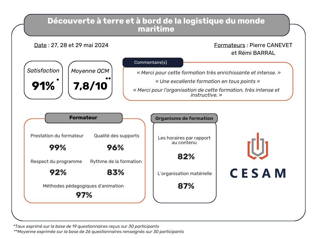 Indicateurs de résultats - Découverte à terre et à bord de la logistique du monde maritime - 24F15